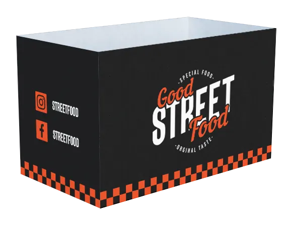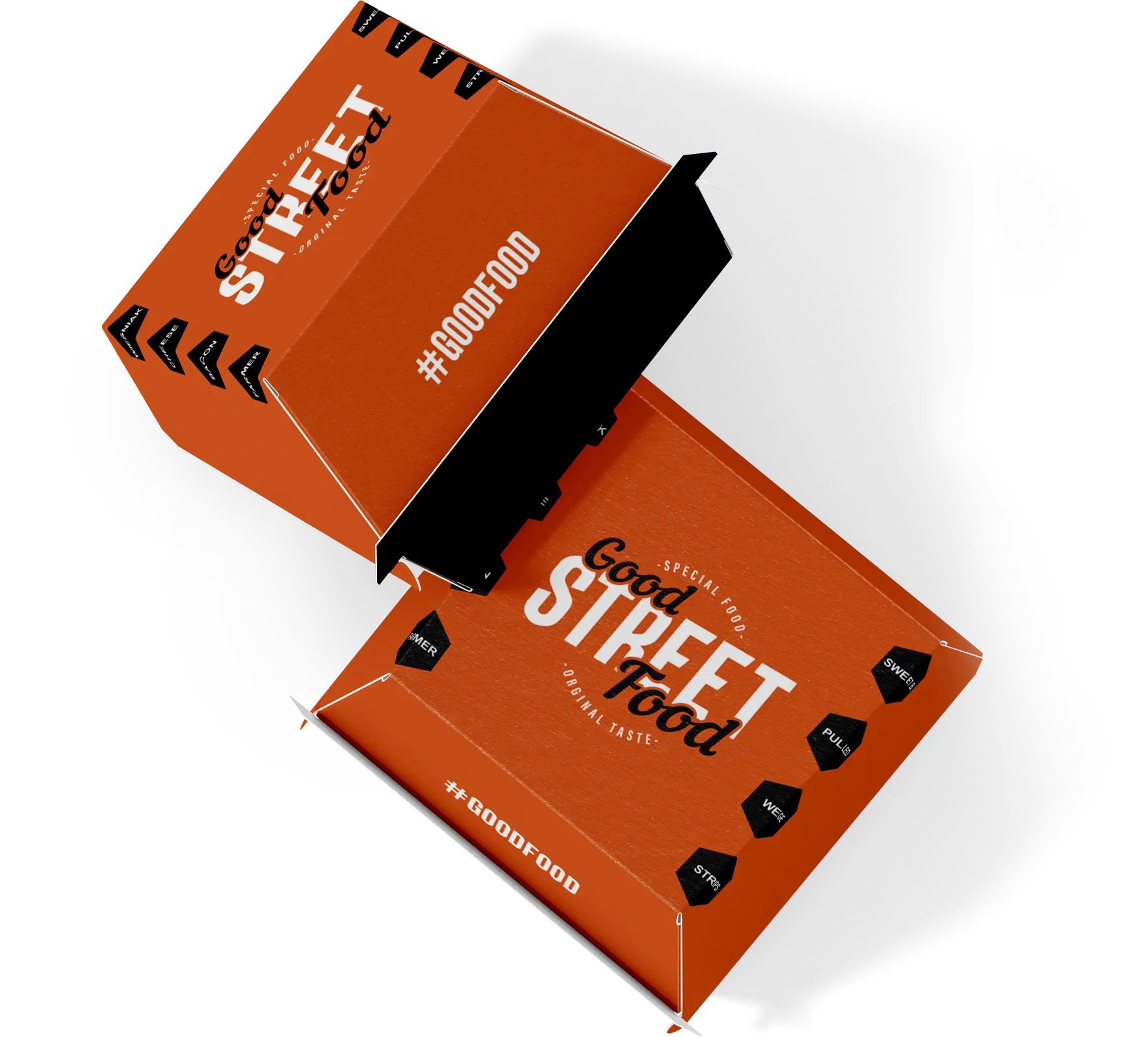 Kieszonka na smash burgera to estetyczne, otwarte z jednej strony opakowanie z tektury litej, które świetnie eksponuje produkt i zapewnia stabilność. Znakomicie sprawdza się w szybkiej obsłudze – wystarczy wsunąć burgera i gotowe. Dzięki możliwości full printu z łatwością dopasujesz je do identyfikacji Twojej marki.