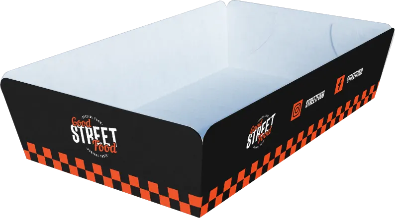 Nasze tacki papierowe to funkcjonalne i estetyczne rozwiązanie dla gastronomii. Idealnie sprawdzą się do burgerów, frytek czy stripsów. Zadrukuj je swoją grafiką i wyróżnij markę w oczach klientów.